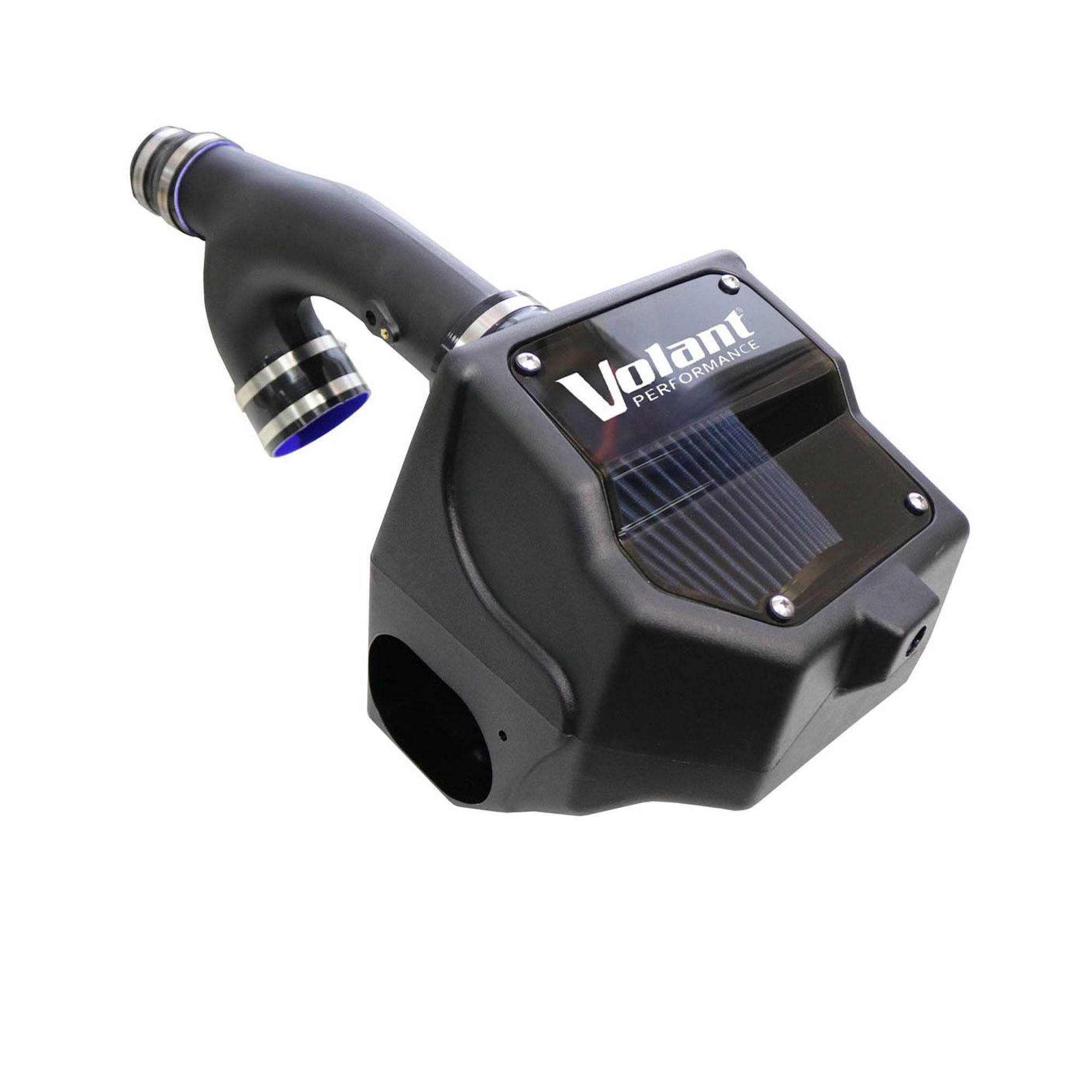 Volant air intake systems utilize a high-velocity venturi filter adapter which provides a smooth transition through the MAF sensor into the intake tube for a much needed airflow improvement over the factory rubber tubing and resonator box. Volant’s Cool Air box is larger than the factory unit and incorporates a larger opening to collect a higher volume of colder ambient air.